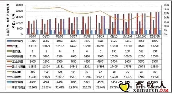 預(yù)估12/13年度玉米飼用消費(fèi)為12500萬(wàn)噸,預(yù)計(jì)12/13年度玉米工業(yè)消費(fèi)為5500萬(wàn)噸。預(yù)估2011/12年度玉米的期末庫(kù)存為4095萬(wàn)噸,玉米的庫(kù)存消費(fèi)比為22.8%; 2012/13年度玉米的期末庫(kù)存為3945萬(wàn)噸,玉米庫(kù)存消費(fèi)比為20.18%。