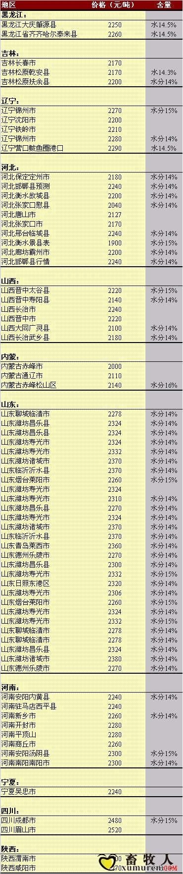 2013年5月13日國(guó)內(nèi)玉米價(jià)格匯總