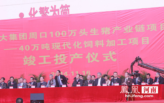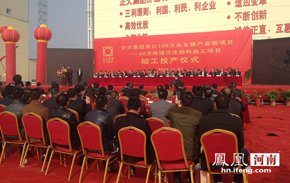 2014年11月16日正大集團(tuán)周口100萬頭生豬產(chǎn)業(yè)鏈項(xiàng)目暨40萬噸現(xiàn)代化飼料加工項(xiàng)目竣工投產(chǎn)儀式在(河南)周口商水舉行?;顒?dòng)現(xiàn)場有關(guān)領(lǐng)導(dǎo)發(fā)表重要講話。 據(jù)悉本次正大有限公司商水100萬頭生豬全產(chǎn)業(yè)鏈項(xiàng)目投資46億元,投產(chǎn)后將集現(xiàn)代化飼料加工及倉儲(chǔ)物流為一體的綜合項(xiàng)目。本項(xiàng)目運(yùn)用了正大集團(tuán)六十年飼料生產(chǎn)經(jīng)驗(yàn)所形成的“原料散裝化、裝卸機(jī)械化、運(yùn)行自動(dòng)化、過程可視化、飼料安全化、安全生產(chǎn)標(biāo)準(zhǔn)化”的“六化”原則。 在總體規(guī)劃、生產(chǎn)工藝、設(shè)備選型、建筑設(shè)計(jì)等各方面進(jìn)行了系統(tǒng)創(chuàng)新,是目前國內(nèi)裝備工藝水平最高的現(xiàn)代化飼料加工企業(yè)。在滿足正大集團(tuán)周口100萬頭生豬產(chǎn)業(yè)鏈自身需要的同時(shí),優(yōu)先供應(yīng)周口規(guī)模養(yǎng)殖戶與養(yǎng)殖合作社。為養(yǎng)殖戶創(chuàng)造價(jià)值,為正大食品安全提供有力保障。 有關(guān)領(lǐng)導(dǎo)講話 活動(dòng)現(xiàn)場 |