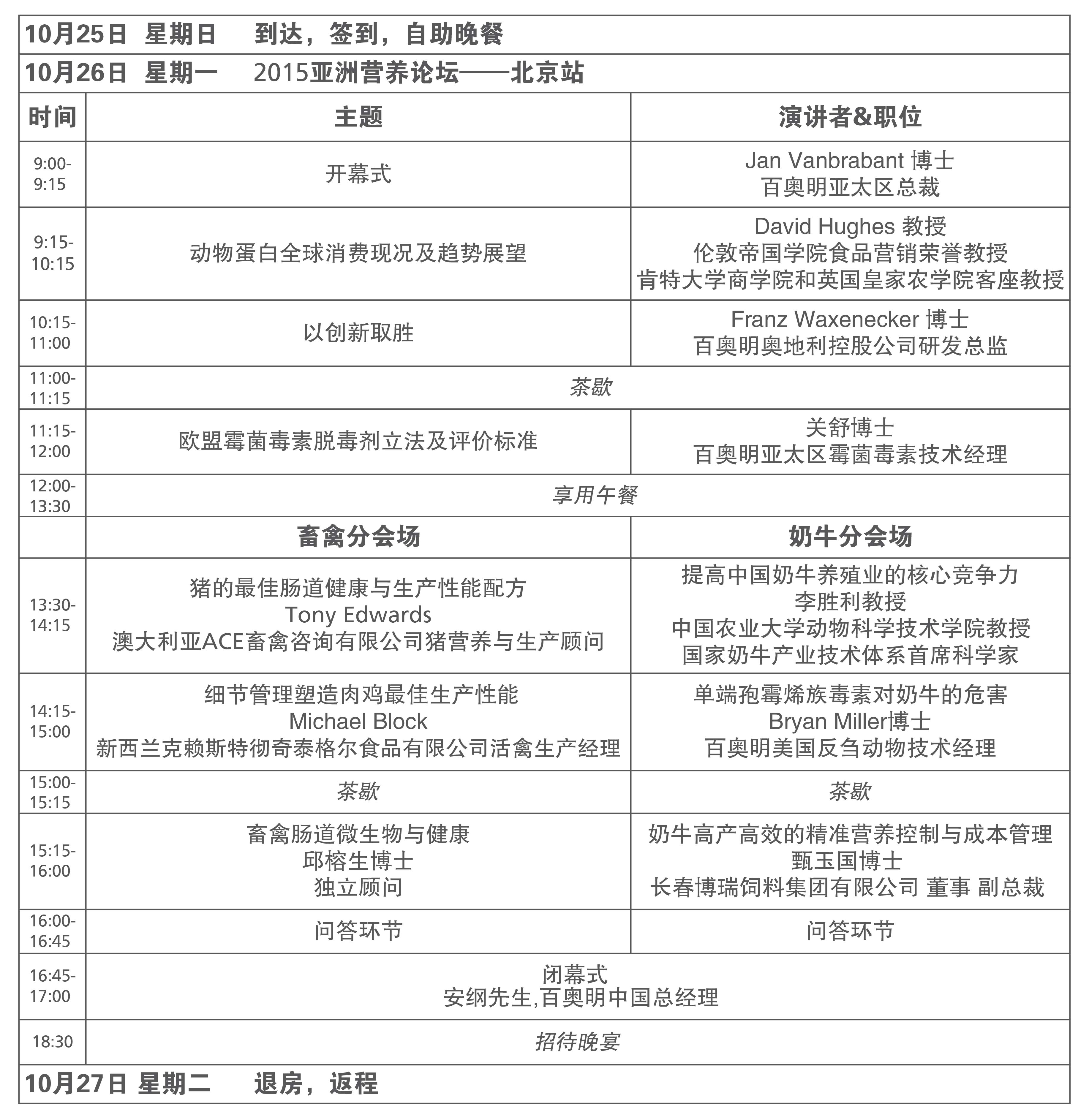 百奧明公司作為全球動(dòng)物健康和營(yíng)養(yǎng)的領(lǐng)導(dǎo)企業(yè)之一,自2005年以來(lái),秉承兩年一屆的亞洲營(yíng)養(yǎng)論壇舉辦傳統(tǒng)。近期,百奧明公司正式發(fā)布2015年這一盛會(huì)的舉辦日期和舉辦國(guó),中國(guó)仍將是此次論壇的主要受眾地區(qū)。自10月20日至29日,百奧明2015亞洲營(yíng)養(yǎng)論壇將于亞洲巡演7站: ·