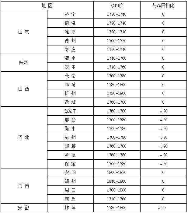 2016年7月29日東北地區(qū)玉米價(jià)格整體穩(wěn)定 單位:元/噸 注:以上價(jià)格均為輪換陳糧玉米價(jià)格,以質(zhì)論價(jià)。因市場(chǎng)多為輪換玉米出庫(kù),收購(gòu)價(jià)多為貿(mào)易商對(duì)接輪換庫(kù)點(diǎn)簽單價(jià)格。 2016年7月29日華北黃淮玉米價(jià)格局部下跌 單位:元/噸 注:以上價(jià)格為2015/16年度容重為二等以上水分14%新玉米理論折干價(jià),但個(gè)別指標(biāo)超標(biāo)。 2016年7月29日北方港口玉米價(jià)格整體穩(wěn)定 單位:元/噸 注:以上價(jià)格為2015/16年度容重為二等以上水分14%新玉米理論折干價(jià),但個(gè)別指標(biāo)超標(biāo)。 2016年7月29日南方港口玉米價(jià)格整體穩(wěn)定 單位:元/噸 注:以上價(jià)格為2015/16年度容重二等以上水分14%干糧價(jià),但個(gè)別指標(biāo)超標(biāo)。 2016年7月29日南方銷區(qū)玉米價(jià)格整體穩(wěn)定 單位:元/噸 注:以上玉米價(jià)格均為2015/16年度水分14%、容重二等玉米價(jià)格,但存在綜合指標(biāo)超標(biāo)問題。成都到站價(jià)參考西北地區(qū)二等新糧標(biāo)準(zhǔn);徐州、連云港為華北糧價(jià)。 來源:中國(guó)玉米網(wǎng) |