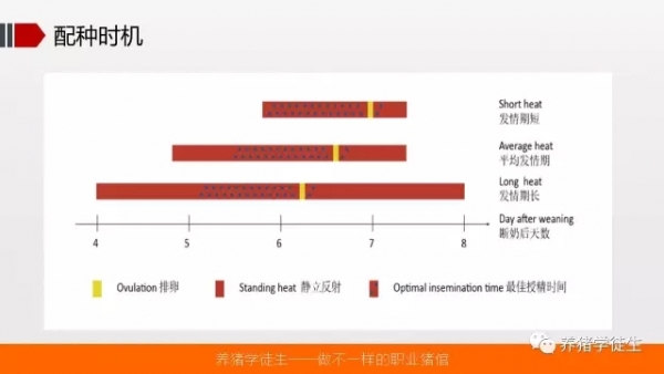 母豬配種策略 作者:孫盈盈 來源:養(yǎng)豬學徒生 話 題 背 景 談到母豬配種,很多人的腦海里都是靜立以后8-12小時開始配種,間隔8-12小時二配,上網看看很多文章也是這樣提及的,寫這篇文章是基于另外一個角度去思考。 母豬一個發(fā)情周期配種次數(shù)多少合理??很多人告訴我說平均配種次數(shù)應該在2次左右,而實際上我們去查閱很多豬場的配種記錄信息做一些分析會發(fā)現(xiàn),很多豬場的平均配種次數(shù)在2.5次以上,意味著超過30%以上的母豬會配3次,每增加一次配種勢必會增加一次母豬繁殖系統(tǒng)感染的風險,另外就是成本問題,還有因為增加配種次數(shù)勢必會增加配種員的勞動強度,意味著會浪費掉在有效母豬配種上花費的精力。所以我最近在做一些關于配種時機的學習,下邊分享一些搜索的資料,供大家參考?。?br> 網上可查詢到的資料 關于配種策略相關知識 母豬繁殖相關時間表 主要時間表 事項一 母豬發(fā)情周期 1.發(fā)情前期、發(fā)情期、發(fā)情后期和間情期(休情期); 2.一般 21天(18-23天); 3.發(fā)情期約2-3天,黃體期約13-14天,卵泡期約3-5天。 事項二 排卵持續(xù)時間 平均為4、5個小時,長的達10-12小時。母豬的排卵持續(xù)時間最短6小時,最長20小時。 事項三 排卵開始時間 靜立開始后的16-48小時。一般在發(fā)情后24-36小時,斷奶后4-7天正好是在發(fā)情后24-36小時。 母豬的排卵開始時間最早在發(fā)情開始后的14小時,最晚在發(fā)情開始后的41小時。 事項四 精子在母豬生殖道內存活時間 最長為42小時,而精子具有受精能力的時間僅25-30小時。精子在母豬生殖道內存活時間為20小時。 事項五 卵子具有受精能力的時間 卵子具有受精能力的時間為8~10小時,最長可達15小時 配種策略合適自己的才是最好的 配種時機 記錄母豬的發(fā)情狀態(tài)非常重要?。。。。?/font> 母豬進行配種標記是必須的?。。。。ㄔ斀庀聢D) 配種標記可以幫助進行配種產仔分析,使用點線叉記錄,少于4個標記意味著發(fā)情持續(xù)期很短,大于6個標記意味著發(fā)情持續(xù)期過長,這些都需要記錄在電腦母豬檔案中。 各個豬場母豬品種、品系有所差異,所以需要使用不同的配種策略,并不是千篇一律的。 DIY工具(公豬擋板) |