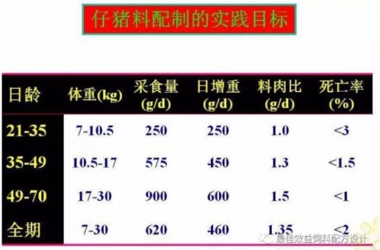 二、仔豬飼料配制過(guò)程中存在的問(wèn)題 (1)對(duì)原料的飼料特性沒(méi)有準(zhǔn)確把握 (2)原料的添加量和比例不合理 (3)飼料原料的質(zhì)量難以保證(穩(wěn)定性) (4)原料指標(biāo)與其實(shí)際的營(yíng)養(yǎng)指標(biāo)難以掌控 (5)精準(zhǔn)營(yíng)養(yǎng)與營(yíng)養(yǎng)水平的誤差,營(yíng)養(yǎng)平衡性 (6)營(yíng)養(yǎng)標(biāo)準(zhǔn)與析因法 (7)營(yíng)養(yǎng)參數(shù)的參考差異(ME ,NE ,DLYS) 如何達(dá)到目標(biāo): 仔豬70日齡時(shí)體重30公斤 (1)減少斷奶應(yīng)激 (2)促進(jìn)食欲 (3)增強(qiáng)消化能力 (4)改善腸道健康 (5)提高免疫力 (6)消除日糧中的限制因素 (7)改善環(huán)境/氣候條件 (8)改進(jìn)生產(chǎn)管理方法
