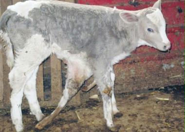 見過這樣的牛嗎?走路閑著3條腿。它不是練過“金雞獨立”,而是生下來就長了7條腿。 “7腿?!蹦壳盎窘】?/P> 長著灰白花的小牛犢身材和其他牛犢一樣,除了正常支撐身體的4條腿外,在牛犢的胸腹部,還“悠蕩”著另外3條腿,其中一條腿的大小和牛犢的正常腿幾乎差不多,只不過腿根部位沒有骨關節(jié);另外兩條腿則只有約40厘米長,在胸部下方呈彎曲形悠蕩著。 本文來源: 華商晨報