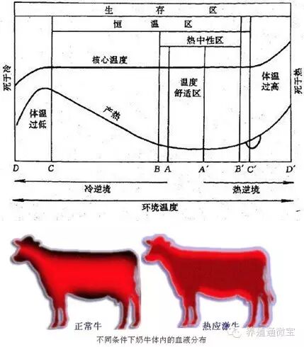 奶牛正常體溫為38.5℃左右,適宜的飼養(yǎng)環(huán)境溫度為10℃~20℃。在該范圍內,奶牛不必動用額外的能量去溫暖或冷卻身體, 有利于奶牛最佳生產性能的發(fā)揮。當環(huán)境溫度超過25℃時便會出現(xiàn)熱應激反應,在濕度較高的地區(qū),溫度超過23℃時即會出現(xiàn)熱應 激反應。