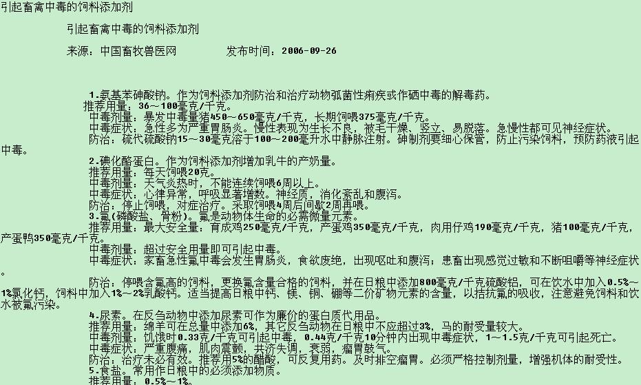 引起畜禽中毒的飼料添加劑 |