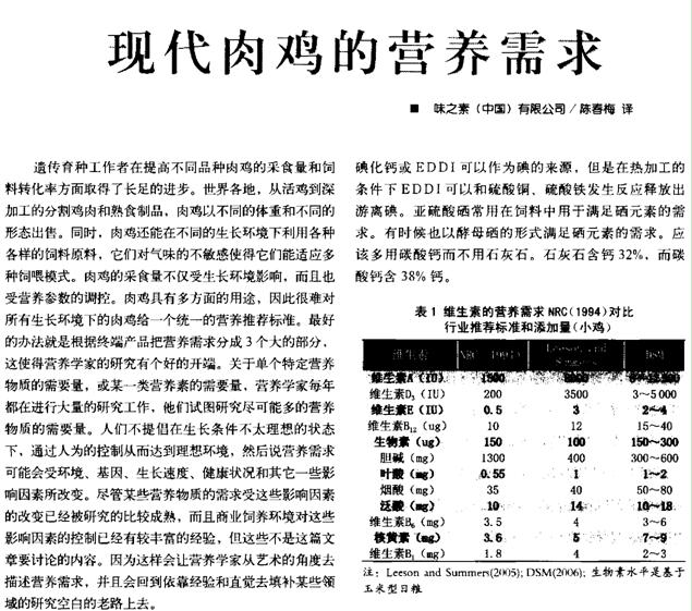 現(xiàn)代肉雞的營養(yǎng)需求 |