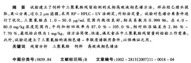 液相色譜檢測飼料中三聚氰胺殘留量的方法研究 |