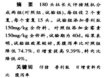 普利肽對(duì)仔豬飼養(yǎng)效果的試驗(yàn) |
