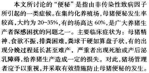 母豬便秘發(fā)生的原因及防治對(duì)策 |