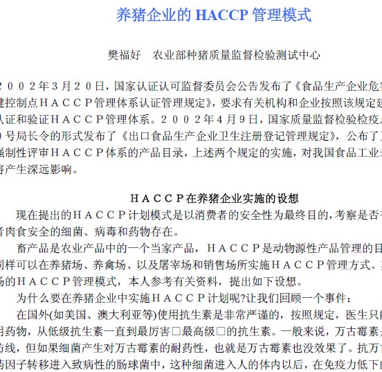 養(yǎng)豬企業(yè)的HACCP管理模式 |