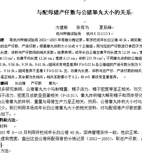 與配母豬產(chǎn)仔數(shù)與公豬睪丸大小的關(guān)系 |