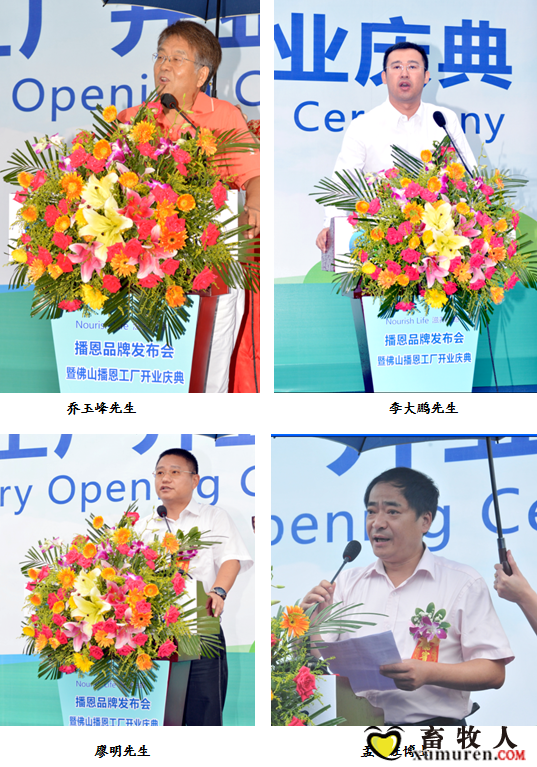 播恩集團(tuán)劉賢政先生為本次慶典主持人,中國(guó)畜牧業(yè)協(xié)會(huì)副會(huì)長(zhǎng)喬玉峰先生、農(nóng)業(yè)部畜牧業(yè)司飼料處副處長(zhǎng)李大鵬先生、華南農(nóng)業(yè)大學(xué)博導(dǎo)副校長(zhǎng)廖明先生、“夢(mèng)之隊(duì)”代表重慶優(yōu)寶生物技術(shù)有限公司董事長(zhǎng)孟懷旺博士、四會(huì)市養(yǎng)殖協(xié)會(huì)曾騰飛會(huì)長(zhǎng)、創(chuàng)何美中國(guó)南區(qū)銷售總監(jiān)趙冰洋先生等分別發(fā)表了熱情洋溢致詞。