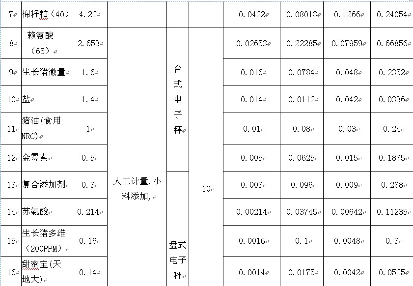 在生產(chǎn)規(guī)模較小的飼料廠(低于500kg混合機(jī))或原料流動(dòng)性能非常差的特種飼料廠中,常采用人工方式完成配料作業(yè)。這時(shí),人員的經(jīng)驗(yàn)與責(zé)任心成為決定配料精度的重要因素。尤其是對(duì)于一些飼料企業(yè)為了追求配料速度,常常采用配料容器進(jìn)行經(jīng)驗(yàn)式配料,由于每批原料間都會(huì)存在差異、每個(gè)人的操作都會(huì)存在差異,這樣的配料誤差是無(wú)法控制的。