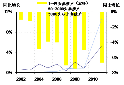 本文作者:國信證券分析師鐘正生、林虎 自9月上旬高點算起,22省市平均豬肉價格已連續(xù)下降超過7周。特別是,至今年年中能繁母豬存欄量已降至2010年以來的歷史低位,市場不免擔(dān)心豬周期引發(fā)通脹失控的風(fēng)險。不過,與前兩輪豬周期相比,本輪豬周期有兩個重要差別,決定了本輪豬價波動的幅度和持續(xù)性不足為慮: 一、與前兩輪豬周期時的經(jīng)濟基本面相比較,本輪不會再出現(xiàn)經(jīng)濟整體過熱、流動性寬松、大規(guī)模投資投入的局面,基本面決定了豬價仍然會延續(xù)一段震蕩調(diào)整期,調(diào)整后豬肉價格有望緩慢上行;二、散養(yǎng)戶逐漸退出、規(guī)?;B(yǎng)殖戶比重不斷提高,我國“豬周期”的波動性有望下降,同時規(guī)?;B(yǎng)殖水平的提高也有效削弱了以往疫病等外生性沖擊事件對于豬價助漲助跌的影響。 基于以上兩點重要差異,我們預(yù)計本輪豬肉價格上漲周期應(yīng)當(dāng)在2014年底開始,持續(xù)上漲至2015第三季度達到階段性高點,豬價上漲幅度在50%左右,漲幅遠遠小于前兩輪周期。考慮到2014全年豬價對CPI同比拉動在0.1%-0.2%之間,我們大致估算出明年豬價對CPI同比的拉動大約在0.05%-0.1%之間。 近三輪豬周期的簡單回顧2003年至今,我國經(jīng)歷近三個完整的豬周期,其中前兩個豬周期持續(xù)時間分別為38個月和46個月,目前正處于第三個豬周期的下跌階段。三輪周期中,豬價波動幅度均較大,2006-2010年周期中豬價最大漲幅達到150%左右(圖1)。 豬價短期波動可以根據(jù)供需缺口和季節(jié)性因素進行判斷,但對中長期趨勢,仍需放到經(jīng)濟貨幣周期的大背景里來看待。 第一輪豬周期是2003年4月-2006年5月,持續(xù)時間38個月。從經(jīng)濟貨幣周期看,這一時期經(jīng)濟基本面的主要特征是流動性過剩和投資過熱,經(jīng)濟處于周期性繁榮階段,GDP增速保持在11%左右,2004年3季度的CPI同比一直高居在5.3%以上。 第二輪豬周期是2006年6月-2010年3月,持續(xù)時間46個月。為熨平國際金融危機的負面沖擊,政府祭出大規(guī)模刺激計劃,這一時期基本面呈現(xiàn)出整體過熱、流動性寬松、通脹持續(xù)上行、勞動力成本加速上升的態(tài)勢。M2當(dāng)月同比增速升至30%左右,同期工業(yè)增加值當(dāng)月同比逼近20%的高點。經(jīng)濟過熱引發(fā)通脹持續(xù)上行,CPI和PPI分別上升至8.7和10.1的階段性高點(表1)。 資料來源:WIND、國信證券經(jīng)濟研究所整理 2010年4月至今,豬價正經(jīng)歷十年來的第三個豬周期,最低從2010年6月的14.86元/公斤上漲至2011年9月的30.41元/公斤,目前豬價回落至21.91元/千克。2011年9月豬價的階段性高點,正好對應(yīng)了工業(yè)增加值同比變化的高點(超過20%),而豬價在2014年上半年跌至谷底時,工業(yè)增加值和M2 當(dāng)月同比變化增速均跌落至階段性低點(圖2)。 圖2 本輪豬周期的“變異”之處從生豬養(yǎng)殖流程來看,從能繁母豬補欄到形成商品豬的供應(yīng)一般需要12-14個月,因此豬肉價格對能繁母豬存欄數(shù)往往有12-14個月的滯后反應(yīng)期。2013年下半年開始,無論是能繁母豬存欄數(shù)還是生豬存欄數(shù),都顯示出了較為明顯的下降趨勢。總體來看,本輪豬周期豬價下跌持續(xù)時間夠長,跌幅夠深,養(yǎng)殖戶養(yǎng)殖虧損時間夠長,虧損夠深。因此,本次下跌周期接近尾聲之際,養(yǎng)殖戶無論是對仔豬的補欄積極性還是對能繁母豬的補欄積極性都并不高。生豬存欄數(shù)雖從底部有所抬升,但仍處相對較低的位置,能繁母豬存欄數(shù)則持續(xù)下降(圖3)??梢?,本輪豬周期無論是從去庫存還是從去產(chǎn)能角度來看,都清除得足夠徹底。 圖3 不過,與前兩輪豬周期相比,本輪豬周期有兩個重要差別,決定了本輪豬價波動的幅度和持續(xù)性不足為慮: 第一個差別是,與前兩輪豬周期時的經(jīng)濟基本面相比較,本輪不會再出現(xiàn)經(jīng)濟整體過熱、流動性寬松、大規(guī)模投資投入的局面(表1)。實際上,當(dāng)前宏觀經(jīng)濟景氣仍然偏低,投資增速趨勢性回落,信用和社會融資擴張增速維持低位,經(jīng)濟基本面決定了豬價仍會延續(xù)一段震蕩調(diào)整期,調(diào)整后豬肉價格有望緩慢漸進地上行。 第二個差別是,散養(yǎng)戶逐漸退出、規(guī)?;B(yǎng)殖戶比重不斷提高,我國“豬周期”的波動性有望下降,同時規(guī)?;B(yǎng)殖水平的提高也有效削弱了以往疫病等外生性沖擊事件對于豬價助漲助跌的影響。 我們可以從美國的生豬規(guī)模化養(yǎng)殖進程中汲取經(jīng)驗。1960-1980年期間,美國生豬養(yǎng)殖業(yè)以小規(guī)模養(yǎng)殖為主;1980年代以后隨著養(yǎng)殖技術(shù)的提高以及飼料工業(yè)的驅(qū)動,生豬養(yǎng)殖專業(yè)化程度迅猛發(fā)展,規(guī)?;M程快速推進,大型豬企充當(dāng)了行業(yè)整合者,通過收購及推廣“公司+農(nóng)戶”的模式迅速擴大市場份額。1987年,美國生豬存欄量超過1000頭的豬場出欄量占比僅為37%,1992年上升至47%,1997年已達71%.1989-1999 年間下游包裝肉行業(yè)集中度提升了22%,2009年生豬養(yǎng)殖行業(yè)前二十家養(yǎng)殖企業(yè)市場占有率超過70%.美國開始出現(xiàn)橫跨飼料生產(chǎn)、生豬養(yǎng)殖、豬肉食品生產(chǎn)與銷售的大型綜合集團,生豬養(yǎng)殖效率顯著上升,而全產(chǎn)業(yè)鏈的生產(chǎn)經(jīng)