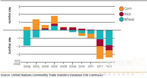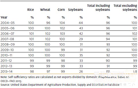 中國農(nóng)業(yè)食品進(jìn)口最近的趨勢 2004年以來,中國農(nóng)業(yè)食品產(chǎn)品(所有可用作食品的農(nóng)業(yè)產(chǎn)出)的進(jìn)口顯著增長。2004至2013年間,中國農(nóng)業(yè)食品產(chǎn)品的實(shí)際進(jìn)口額增長了275%,至990億美元(按2013年的美元價(jià)值計(jì)算)。增長最快的種類是奶制品(增長847%)、水果和蔬菜(427%)、油脂和油籽(254%)、肉類和海鮮(209%)和谷物(84%)。 農(nóng)業(yè)食物產(chǎn)品進(jìn)口,中國 最迅速的進(jìn)口增長發(fā)生在2009至2013年間,期間中國農(nóng)業(yè)食品進(jìn)口實(shí)額翻番。中國消費(fèi)者的日糧改變和收入升高造成不僅對(duì)食品的量的需求增長,而且對(duì)品質(zhì)和多樣性的需求也提高 (Hamshere等人,2014)。隨著該階段一系列日用品的消費(fèi)增長超過產(chǎn)量增長,國內(nèi)價(jià)格也出現(xiàn)上漲。中國政府通過自由貿(mào)易協(xié)定的簽署增加了貿(mào)易開放程度,允許進(jìn)口產(chǎn)品來滿足需求。結(jié)果,水果、蔬菜、肉品、奶制品和海鮮的進(jìn)口顯著增長。 隨著國內(nèi)畜牧業(yè)生產(chǎn)隨肉品需求強(qiáng)勁而擴(kuò)張,對(duì)進(jìn)口飼用谷物和油籽的需求也有增長。 盡管2009年以來目標(biāo)作物的自給自足比例一直維持在95%以上(大豆除外),但持續(xù)的國內(nèi)高價(jià)格有可能會(huì)給中國未來在這些作物方面的自給自足能力構(gòu)成挑戰(zhàn)。 禾谷和油籽 中國的小麥、大米和玉米進(jìn)口過去五年當(dāng)中全都增長,盡管國內(nèi)產(chǎn)量創(chuàng)下紀(jì)錄。雖然中國過去零星地進(jìn)口國這些谷物,但2007年之前中國是凈出口國。到2012年,它在全部這三種谷物方面都成了凈進(jìn)口國。 大豆是中國進(jìn)口的主要油籽。從2004年以來,大豆進(jìn)口已經(jīng)顯著增長,盡管國內(nèi)產(chǎn)量已經(jīng)下降。2013年,大豆進(jìn)口總額380億美元,或大約相當(dāng)農(nóng)產(chǎn)品進(jìn)口總額的42%。 大米是中國膳食的主糧。盡管大米進(jìn)口在國內(nèi)消費(fèi)量當(dāng)中占的比例很?。ù蠹s每年2%),但中國2013年進(jìn)口的大米是340萬噸。越南是中國該年最大的供應(yīng)國,占了大米進(jìn)口59%的份額,其次是泰國(22%)。 在過去五年中,美國在中國玉米、小麥和大豆進(jìn)口中占據(jù)了顯著的份額。2013年,美國供應(yīng)了中國90%的玉米進(jìn)口、68%的小麥進(jìn)口和35%的大豆進(jìn)口。然而,2013年10月中國禁止了MIR162玉米的進(jìn)口,這是一種在美國使用廣泛的轉(zhuǎn)基因品種。結(jié)果,2014年1至8月間,美國向中國的玉米出口同比減少了86%。中國通過國內(nèi)產(chǎn)量增高和提高從烏克蘭的進(jìn)口量來彌補(bǔ)了這個(gè)空缺。 部分谷物的凈貿(mào)易,中國 2009年以來谷物進(jìn)口量增長,因?yàn)閲鴥?nèi)需求增長,并造成國內(nèi)價(jià)格升高。國內(nèi)價(jià)格的增高也是保護(hù)價(jià)格升高的結(jié)果(Gale 2013)。對(duì)那些經(jīng)過額外加工并且用作飼料的作物(例如大米、玉米和大豆)來說,進(jìn)口產(chǎn)品常常是成本最低的選項(xiàng)。作為進(jìn)一步加工的投入材料,低價(jià)的進(jìn)口產(chǎn)品讓加工商能夠保住利潤空間。 對(duì)于大米和小麥,鑒于國營貿(mào)易在這些日用品當(dāng)中發(fā)揮的作用,最近進(jìn)口的增長不大可能長期維持。小麥進(jìn)口過去兩年主要限于優(yōu)質(zhì)產(chǎn)品,用來與在面粉加工過程中與國內(nèi)谷物混合 (Price 2014)。2011年小麥國內(nèi)價(jià)格高于保護(hù)價(jià)格,因此STE未按保護(hù)價(jià)格購買任何小麥。這可能造成了2012和2013年間小麥進(jìn)口量的增長,以便支持儲(chǔ)備系統(tǒng)(USDA–FAS 2014)。這和2004年的情況類似,當(dāng)時(shí)中國進(jìn)口了大量小麥,來投入國內(nèi)存儲(chǔ),但這并沒有造成小麥進(jìn)口量長期的增長。 對(duì)玉米和大豆來說,進(jìn)口增長多半將會(huì)持續(xù),只要國內(nèi)價(jià)格仍然居高的話。肉品和畜產(chǎn)品的需求增長,加上保護(hù)價(jià)格的提高,已經(jīng)對(duì)國內(nèi)飼用谷物價(jià)格構(gòu)成了上行壓力,盡管玉米產(chǎn)量創(chuàng)下紀(jì)錄。因?yàn)橥恋厝匀挥邢?,玉米和大豆產(chǎn)量的任何進(jìn)一步提高不大可能,除非小麥或大米(由于保護(hù)價(jià)格的關(guān)系,這兩種谷物的相對(duì)回報(bào)高于玉米和大豆)的種植面積減少,或生產(chǎn)力獲得實(shí)質(zhì)性的提升。 盡管谷物和油籽進(jìn)口增長,但大米、小麥和玉米方面進(jìn)口量相對(duì)于國內(nèi)消費(fèi)量來說仍然較小。2013-14年,中國玉米自給率大約99%,大米大約98%,小麥97%。相比之下,大豆的自給率約為26%。 部分作物的自給率,中國 肉品與奶制品 中國肉品和奶制品進(jìn)口額2004至2013年增長了幾乎10倍(按2013年的美元價(jià)值計(jì)算)。這是收到了中國牛肉、羊肉和奶制品進(jìn)口量大幅增長的推動(dòng)。這個(gè)階段的產(chǎn)量略有增長,但遠(yuǎn)低于消費(fèi)增長速度。 2013年,按進(jìn)口額計(jì)算,澳大利亞供應(yīng)了中國進(jìn)口的大部分牛肉(57%),并且是中國羊肉進(jìn)口的第二大供應(yīng)國(39%)。新西蘭供應(yīng)了中國進(jìn)口的大部分羊肉(57%)和奶制品(63%)。豬肉的主要供應(yīng)國包括美國(21%)和德國(19%)。家禽進(jìn)口
