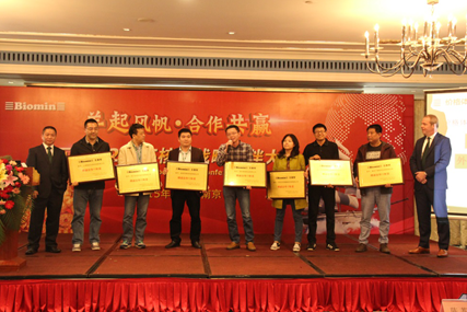 百奧明一年一度的核心戰(zhàn)略戰(zhàn)略伙伴大會(huì)于2015年4月23日在六朝古都南京如期舉行,百奧明畜禽與水產(chǎn)板塊的全國經(jīng)銷商們與百奧明的所有銷售成員從全國各地紛至沓來,相聚在人杰地靈的蓉城,共同探討新一年的發(fā)展與規(guī)劃。 大會(huì)于上午9點(diǎn)準(zhǔn)時(shí)開始,由百奧明畜禽版塊商務(wù)總監(jiān)何金明博士主持。首先百奧明亞太區(qū)總裁Jan VANBRABANT致辭,并介紹百奧明全球戰(zhàn)略和百奧明中國銷售團(tuán)隊(duì)的新構(gòu)架,并向全體隆重介紹了百奧明中國新任總經(jīng)理安綱先生。畜禽版塊商務(wù)總監(jiān)何金明為所有來賓詳細(xì)講解百奧明2015中國市場(chǎng)發(fā)展規(guī)劃,并向2014年度優(yōu)秀的經(jīng)銷商進(jìn)行頒獎(jiǎng),今年的獎(jiǎng)項(xiàng)中,百奧明特別增設(shè)了“精誠合作10年獎(jiǎng)”,共有7名經(jīng)銷商獲得該獎(jiǎng)項(xiàng),這不僅是對(duì)經(jīng)銷商的肯定,更是百奧明產(chǎn)品高品質(zhì)的體現(xiàn)。 隨后,百奧明亞太區(qū)技術(shù)經(jīng)理關(guān)舒博士闡述了脫毒劑產(chǎn)品知識(shí)、更新內(nèi)容,會(huì)議井然有序的開展之余,嘉賓們?cè)趩柎瓠h(huán)節(jié)踴躍的討論與提問將大會(huì)推至更為熱烈和積極的氣氛,為新一年的百奧明的產(chǎn)品、銷售計(jì)劃、發(fā)展前景等議題群策群力。在稍作休整后,會(huì)議于下午1點(diǎn)繼續(xù)進(jìn)行,百奧明中國財(cái)務(wù)經(jīng)理陳蘇蘇生動(dòng)地闡述了百奧明信用管理制度。隨后技術(shù)經(jīng)理陳偉光博士耐心講解了百優(yōu)酸產(chǎn)品信息更新,緊接著湖南銷售經(jīng)理謝鵬和廣東、廣西銷售經(jīng)理王清海也做了銷售經(jīng)驗(yàn)的分享。隨后,百奧明中國技術(shù)經(jīng)理王金勇博士對(duì)植物提取物Digestarom產(chǎn)品信息進(jìn)行耐心的講解。大會(huì)的最后中山市康諾生物科技有限公司的李總和長(zhǎng)沙大昌飼料有限公司的楊總上臺(tái)發(fā)言對(duì)2014年的合作進(jìn)行總結(jié),并表達(dá)了新一年的展望與計(jì)劃。 會(huì)議開展期間,百奧明組織各位嘉賓欣賞了江南民族特色舞蹈,在和樂融融的氛圍中,2015年百奧明經(jīng)銷商大會(huì)圓滿落幕。 對(duì)于百奧明來說,2015年將是一個(gè)具有挑戰(zhàn)的一年,完美落幕的經(jīng)銷商大會(huì)為今年開了一個(gè)好頭,預(yù)示著百奧明將與各位經(jīng)銷商一起“羊起風(fēng)帆,合作共贏”! |