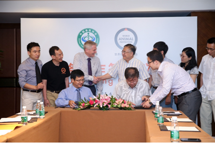 2015年6月17日,中國獸醫(yī)協(xié)會和世界動物保護(hù)協(xié)會在北京漁陽飯店簽署戰(zhàn)略合作協(xié)議,雙方在認(rèn)可動物健康、動物福利與獸醫(yī)公共衛(wèi)生緊密相關(guān)的基礎(chǔ)上,將共同推動動物福利宣傳、教育、培訓(xùn)、科學(xué)研究、立法及企業(yè)試點培訓(xùn)等工作。該合作協(xié)議的簽署將為中國動物福利事業(yè)的發(fā)展注入強勁的動力。 中國獸醫(yī)協(xié)會秘書長辛盛鵬與世界動物保護(hù)協(xié)會中國首席代表趙中華代表雙方簽署了該協(xié)議。原中國獸醫(yī)協(xié)會會長、中國馬業(yè)協(xié)會理事長賈幼陵、中國獸醫(yī)協(xié)會副秘書長黃向陽、動物衛(wèi)生服務(wù)與福利分會會長常志剛、分會秘書長賈自力、動物福利項目主管孫忠超博士、動物福利教育與培訓(xùn)部主任張萍萍,以及世界保護(hù)協(xié)會總裁Mike Baker先生、中國科學(xué)顧問孫全輝博士、傳媒經(jīng)理劉輝等出席了本次簽約儀式。 根據(jù)該協(xié)議,雙方承諾共同推動人道與可持續(xù)農(nóng)業(yè)項目發(fā)展,推動中國“農(nóng)場動物福利促進(jìn)獎”的發(fā)展,推動動物福利寫入相關(guān)標(biāo)準(zhǔn)、法律和法規(guī),共同舉辦中國獸醫(yī)大會動物福利論壇,推廣雙方機構(gòu)合作編寫的《動物福利概論》教材,培訓(xùn)養(yǎng)殖和屠宰企業(yè),以及鼓勵和支持動物福利領(lǐng)域的技術(shù)交流和合作。 世界動物保護(hù)協(xié)會與中國獸醫(yī)協(xié)會的合作開啟了動物福利在中國的新篇章。未來,雙方還將繼續(xù)攜手合作,制定出更多切實可行的舉措,使動物福利理念在中國廣為普及,深入人心。 關(guān)于世界動物保護(hù)協(xié)會: 世界動物保護(hù)協(xié)會是全球領(lǐng)先的動物福利保護(hù)組織。三十多年來,協(xié)會始終以保護(hù)全世界動物為己任。我們堅信,動物福利是不容忽視的重要問題。世界動物保護(hù)協(xié)會將始終關(guān)注并反對虐待動物的行為。我們認(rèn)為,無論是針對野生動物、社區(qū)動物、災(zāi)難中受困的動物,還是針對農(nóng)場動物,虐待動物的行為都必須停止。目前,世界動物保護(hù)協(xié)會的工作范圍覆蓋50多個國家和地區(qū),通過與當(dāng)?shù)厣鐓^(qū)、非政府組織(NGO)和政府部門進(jìn)行合作,共同致力于動物生活狀況改善。與此同時,我們還為全球動物積極奔走,憑借聯(lián)合國顧問的地位與身份發(fā)出動物保護(hù)倡議。我們秉承盡職盡責(zé)、堅持不懈的態(tài)度積極工作,目的是將動物福利納入全球議程,告訴人們關(guān)愛動物有利于全人類。 關(guān)于中國獸醫(yī)協(xié)會: 中國獸醫(yī)協(xié)會(CVMA)成立于2009年,是一個全國性、行業(yè)性、非營利性的社會組織,其業(yè)務(wù)主管單位為農(nóng)業(yè)部。協(xié)會的宗旨是:遵守國家憲法、法律、法規(guī)和政策,遵守社會道德風(fēng)尚;發(fā)揮行業(yè)指導(dǎo)、服務(wù)、協(xié)調(diào)、維權(quán)和自律等作用;團(tuán)結(jié)和組織全國獸醫(yī),提高獸醫(yī)的業(yè)務(wù)素質(zhì)、醫(yī)療水平和服務(wù)質(zhì)量;維護(hù)會員的合法權(quán)益;整合行業(yè)資源、規(guī)范行業(yè)行為、開展行業(yè)活動,促進(jìn)獸醫(yī)工作的全面、健康發(fā)展。 |