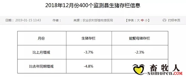 正文摘要:2019年正值中國的豬年,有豬就有錢! 2019年1月15日,農(nóng)業(yè)農(nóng)村部發(fā)布2018年12月份400個檢測縣生豬存欄信息,數(shù)據(jù)顯示,截止2018年12月份,生豬存欄環(huán)比減少3.7%,同比減少4.8%;能繁母豬環(huán)比減少2.3%,同步減少8.3% ... |