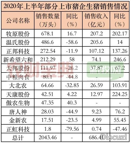 正文摘要:近期,上市豬企陸續(xù)公布上半年生豬出欄情況。據(jù)新牧君統(tǒng)計上半年12家上市豬企上半年生豬出欄高達2043.46萬頭,銷售收入686.41億元。 上半年上市豬企賺得半滿缽滿,而行業(yè)中豬場擴張也在猛烈進行中。數(shù)據(jù)顯示2020年 ... |