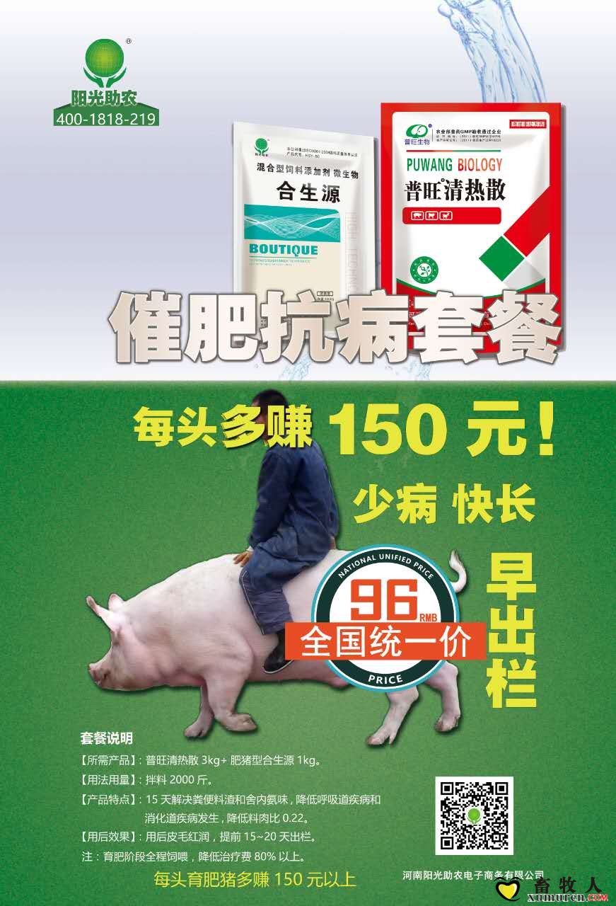 正文摘要:肥豬催肥抗病套餐,“肥豬合生源1kg+普旺清熱散3kg”統(tǒng)一價(jià)96元,拌料2000斤。 飼喂7天后采食量明顯增加,吃的比以前多了,15天后解決便料渣和舍內(nèi)氨味,呼吸道和消化道疾病的發(fā)病率,降低料肉比0.22。育肥段全程飼 ... |