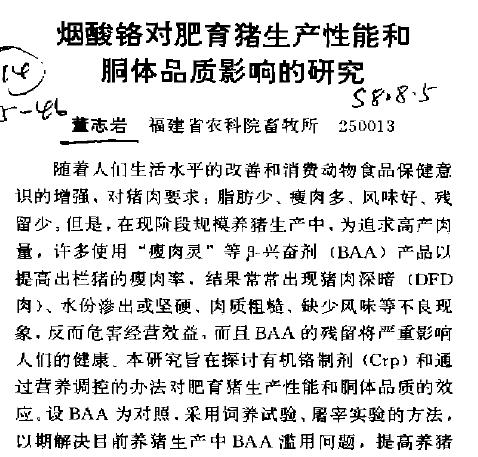煙酸鉻對(duì)肥育豬生產(chǎn)性能和胴體品質(zhì)影響的研究 |