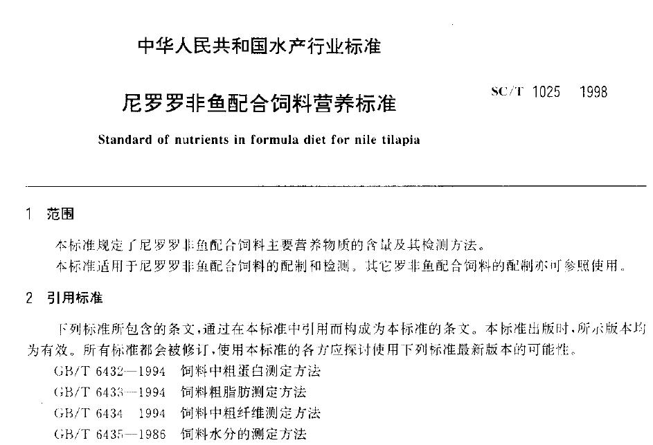 SCT 1025-1998 尼羅羅非魚(yú)配合飼料營(yíng)養(yǎng)標(biāo)準(zhǔn) |