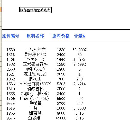 混養(yǎng)魚料配方加營(yíng)養(yǎng)素表 |