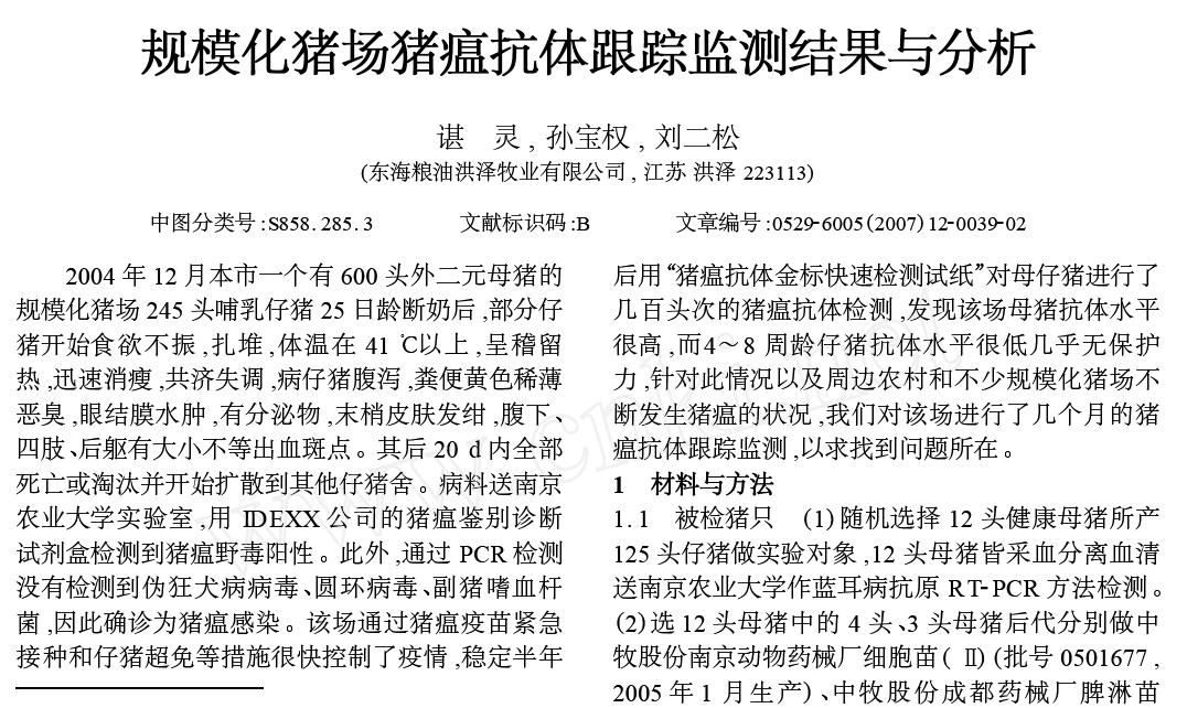 規(guī)模化豬場(chǎng)豬瘟抗體跟蹤監(jiān)測(cè)結(jié)果與分析 |