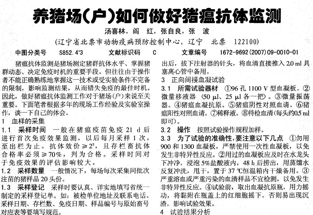 養(yǎng)豬場(chǎng)(戶)如何做好豬瘟抗體監(jiān)測(cè) |