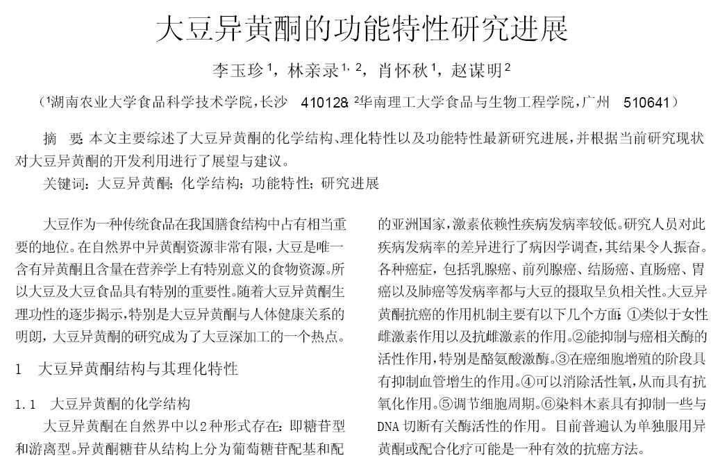 大豆異黃酮的功能特性研究進(jìn)展 |