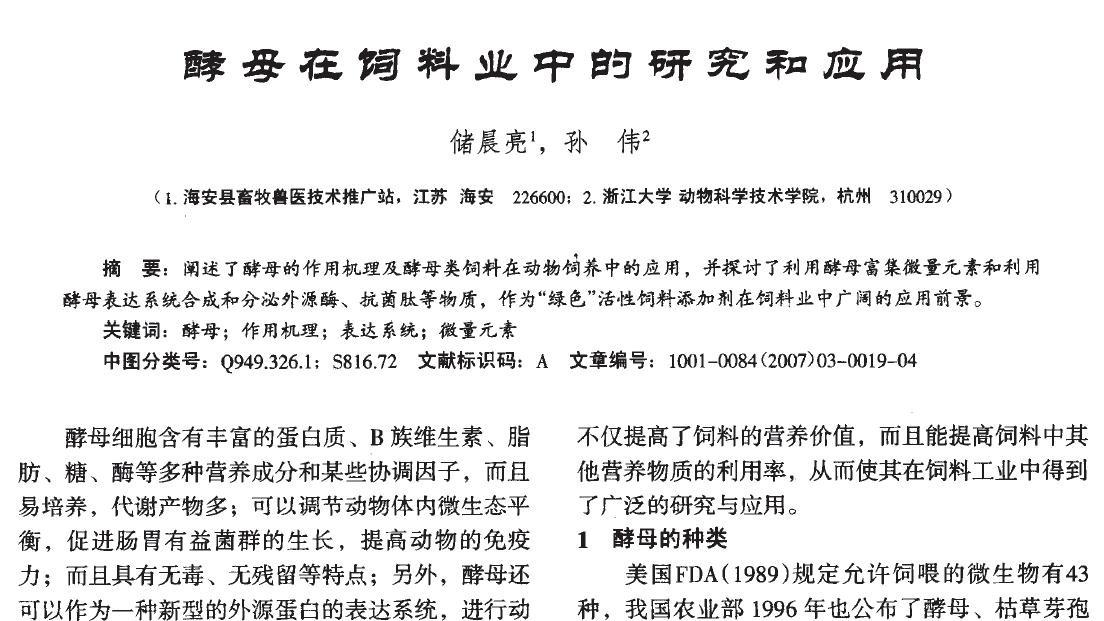 《酵 母 在 詞 料 業(yè) 中 的 研 究 和 應 用》 |