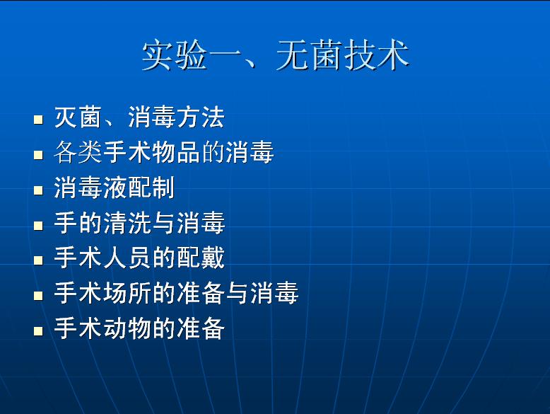 實(shí)驗(yàn)一:手術(shù)無菌操作技術(shù) |