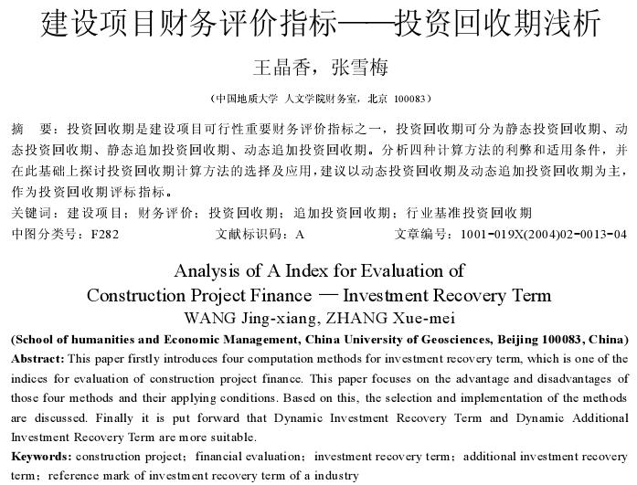 建設(shè)項(xiàng)目財(cái)務(wù)評價(jià)指標(biāo)——投資回收期淺析 |