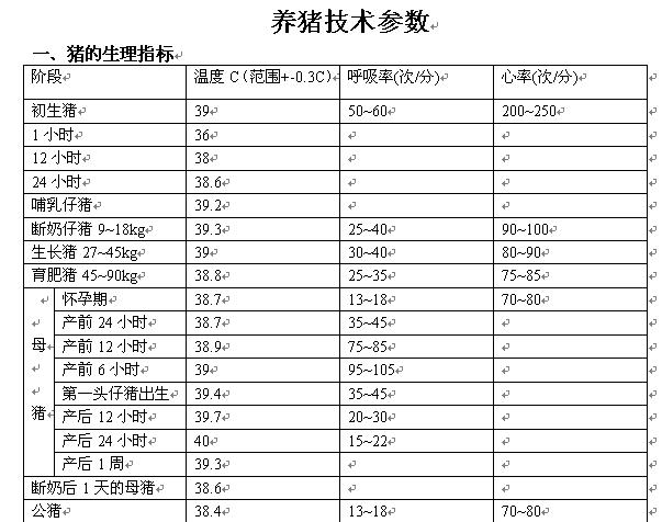 養(yǎng)豬的基本參數(shù) |