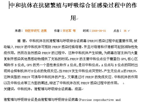 中和抗體在抗豬繁殖與呼吸綜合征感染過程中的作用 |