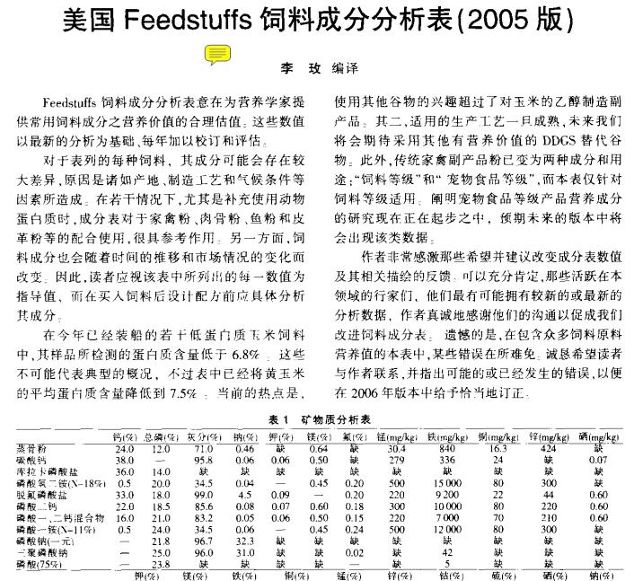 2005FEEDSTUFF 美國(guó)原料數(shù)據(jù) |