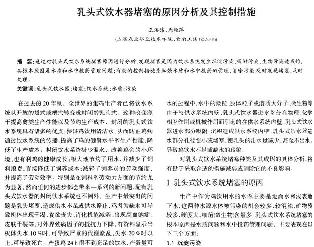 乳頭式飲水器堵塞的原因分析及其控制措施 |