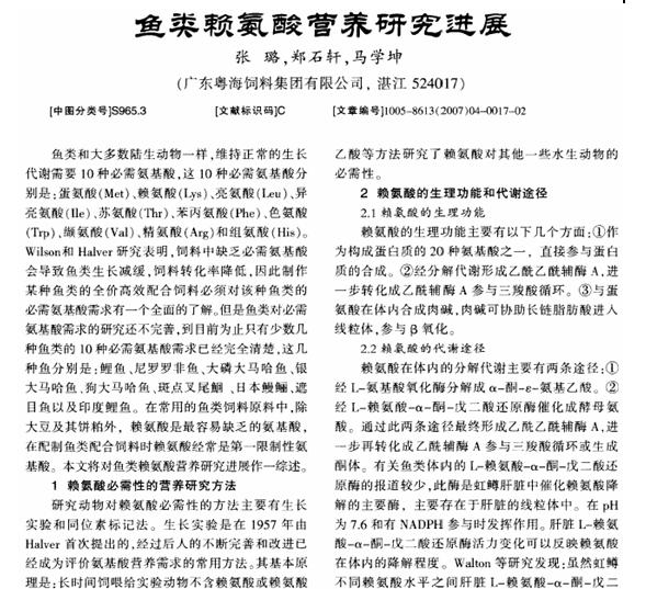 魚類賴氦酸營養(yǎng)研究進(jìn)展 |