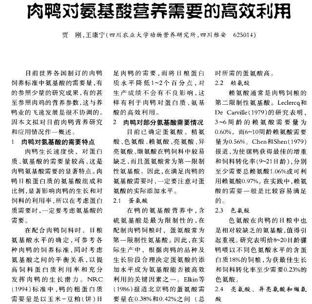 肉鴨對氨基酸營養(yǎng)需要的高效利用 |