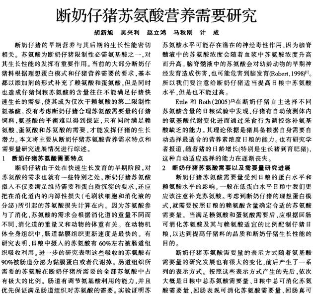 斷奶仔豬蘇氨酸營養(yǎng)需要研究 |