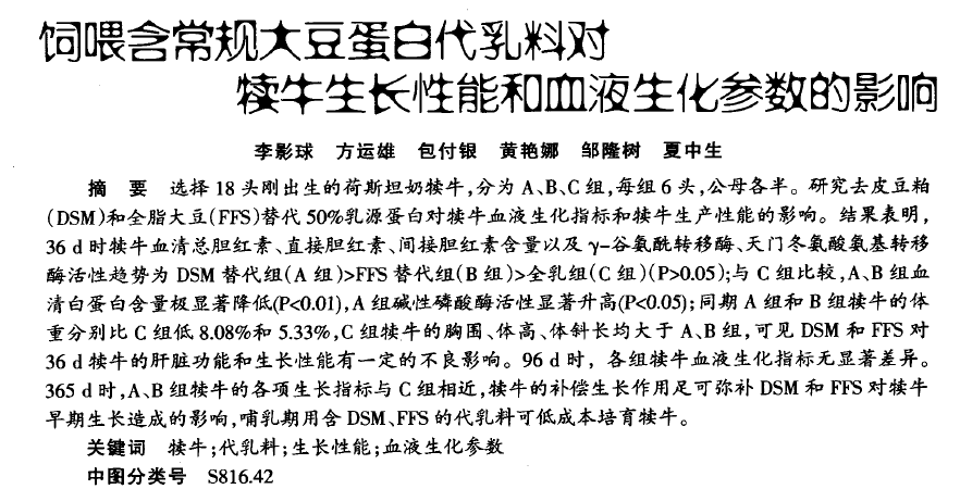 飼喂含常規(guī)大豆蛋白代乳料對犢牛生長性能和血液生化參數(shù)的影響 |