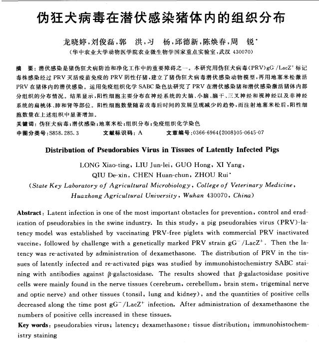 偽狂犬病毒在潛伏感染豬體內(nèi)的組織分布 |