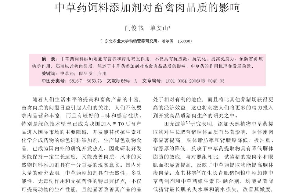 中草藥飼料添加劑對畜禽肉品質(zhì)的影響 |