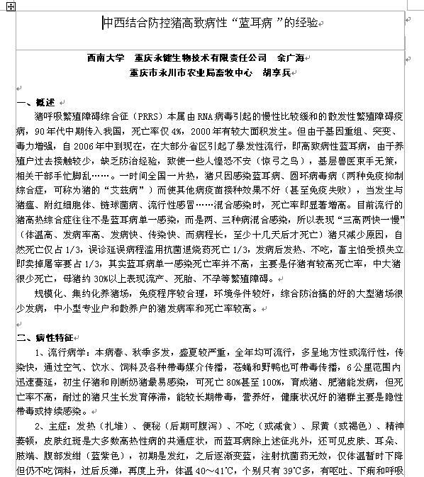 中西結(jié)合防控豬高致病性“藍耳病”的經(jīng)驗 |