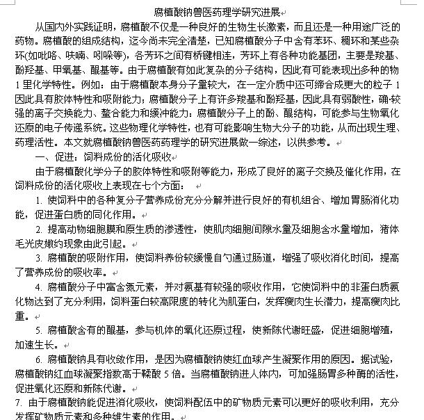 腐植酸鈉獸醫(yī)藥理學(xué)研究進展 |