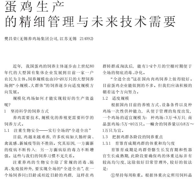 蛋雞生產(chǎn)的精細管理與未來技術(shù)需要 |