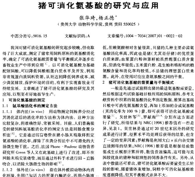 豬可消化氨基酸的研究與應(yīng)用 作者:張華琦;楊正德 .doc |