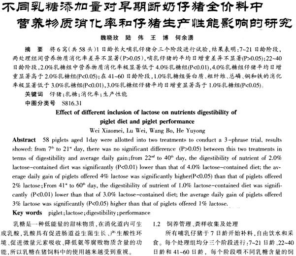 不同乳糖添加對(duì)斷奶仔豬消化及生長性能影響.doc |