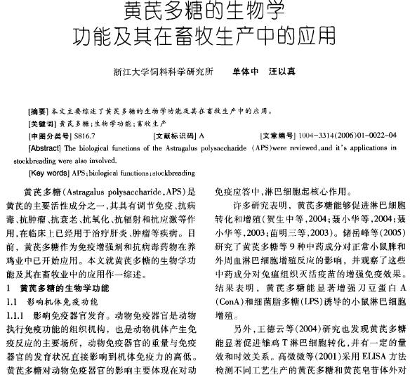 黃芪多糖的生物學(xué)功能及其在畜牧業(yè)生產(chǎn)中的應(yīng)用 |